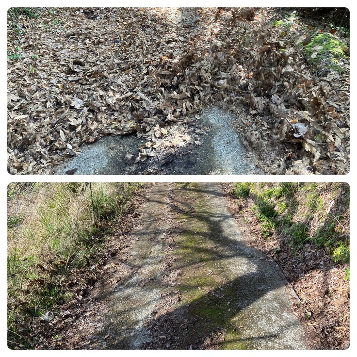 山の入口までの公衆用道路があって、現状でも車は通れるのですが、落ち葉や落石、枝が酷いのでブロワーで飛ばして整備もしました。