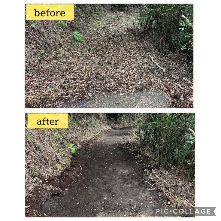 ⑥の上の道が山への入口となる道で落葉の除去をした部分です。