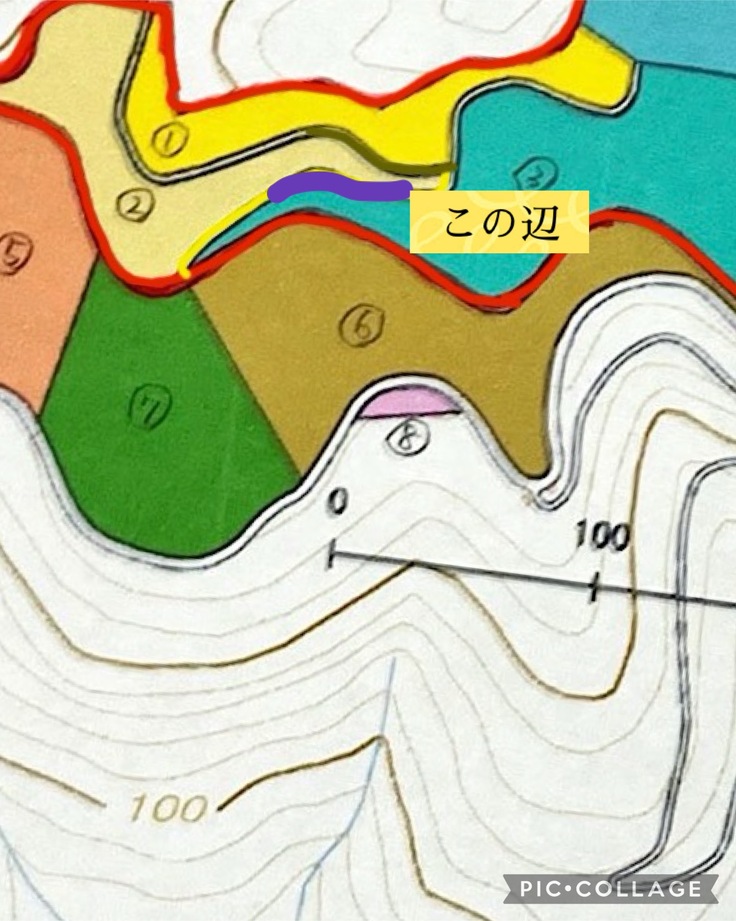 ↑↑↑近くで撮りすぎて分かりづらいですが、シダの少ない谷のところで。