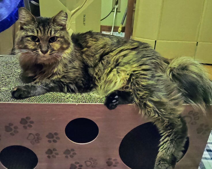 母と、もうすぐ12歳になる猫・陸と天、5歳になる猫・海、推定4歳になるエリと暮らしています。陸と天は草むらでかたまっていたのを保護された方が里親募集されており、海とエリは近隣をさまよっていたのを保護しました。