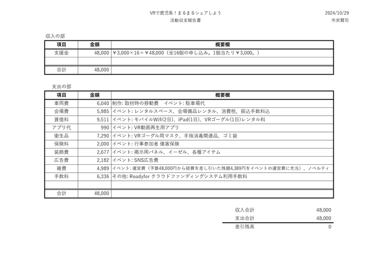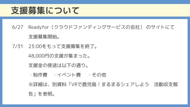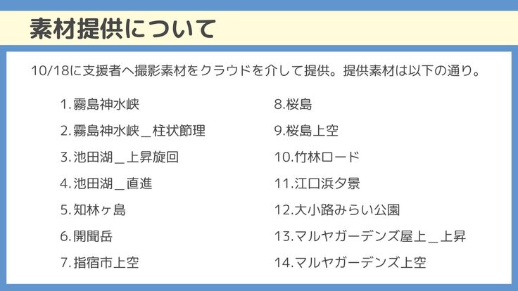 ●プロジェクト用に制作したVR動画と撮影した素材を差し上げます。