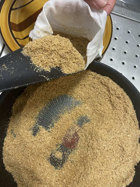 こちらは、リターンの一つであります、【手作り米ぬか雑巾】を作成している時の風景になります。