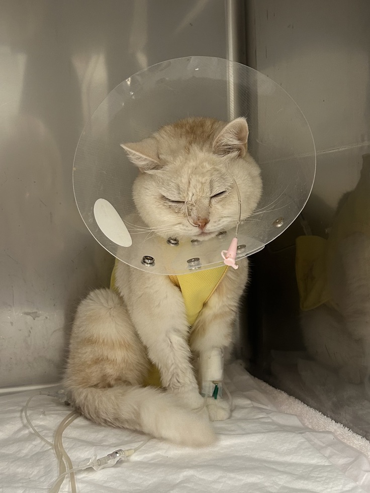 尿管結石症・慢性腎不全ステージ4の手術・点滴入院・検査等一式の費用(4月5日に完了)と、2024年12月までの継続的な治療費用・ご飯代(療法食)等に当てさせていただきます。