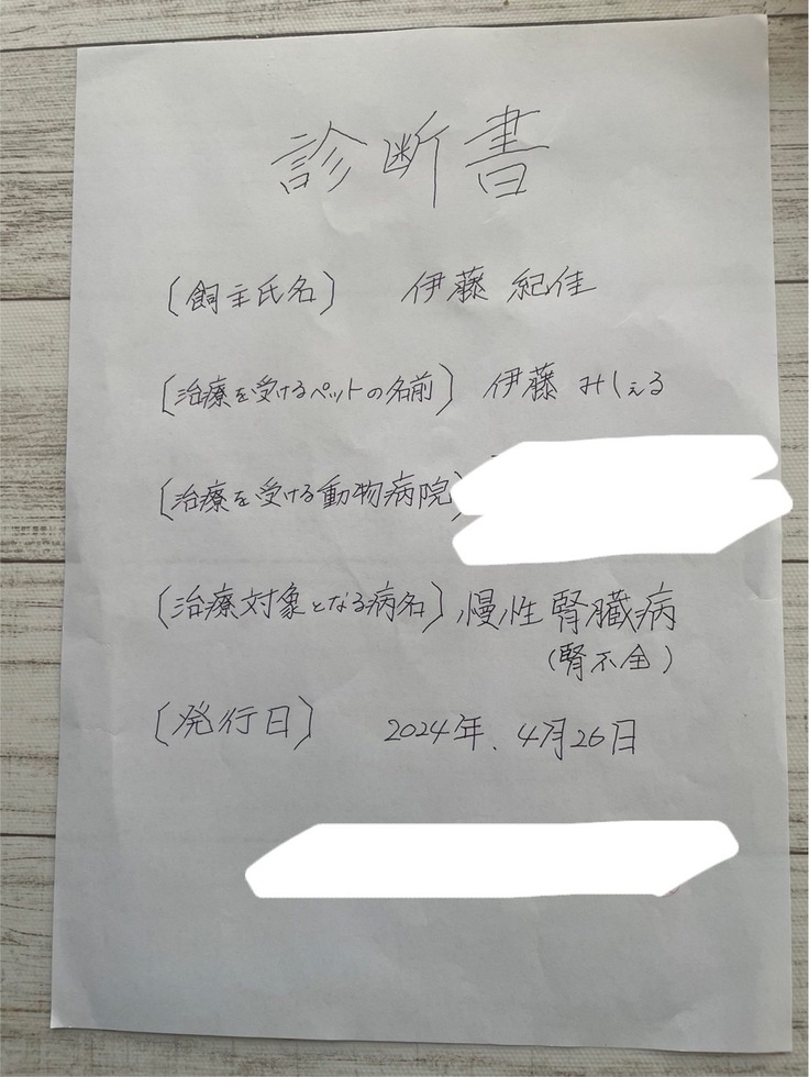 ページ上に掲載している診断書や診療明細書などの資料は全て動物病院から掲載の許諾を得ております。