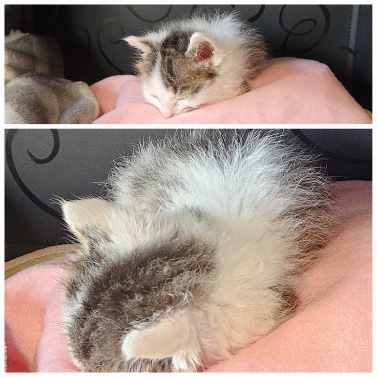 ゴマちゃんは他の猫🐱より成長はゆっくりですが、先天性の病気に負けず頑張って離乳食を食べてます!