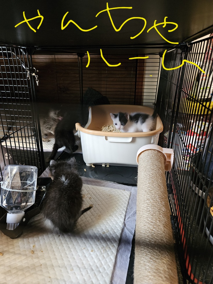 他の4匹は、ちびっこギャングごはんタイムは大戦争…