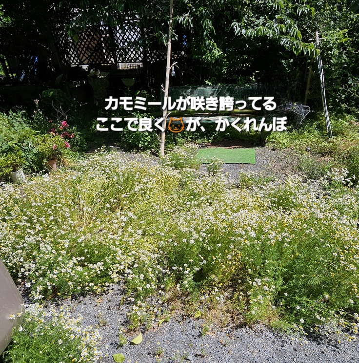 今里の🐱ハウスの庭はカモミールが咲き誇ってます❗