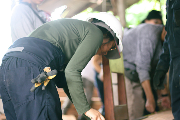 For 10 days, we commuted by boat to the site in Quebrada Zaragoza and built the project under the guidance of the team of professors and local builders. The construction process started with the foundation check, followed by the assembly of structural frames and then the placement of roof beams. This allowed us to install the floor and roof deck, which were worked on concurrently with the installation of the facade and furniture.
