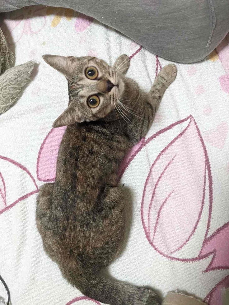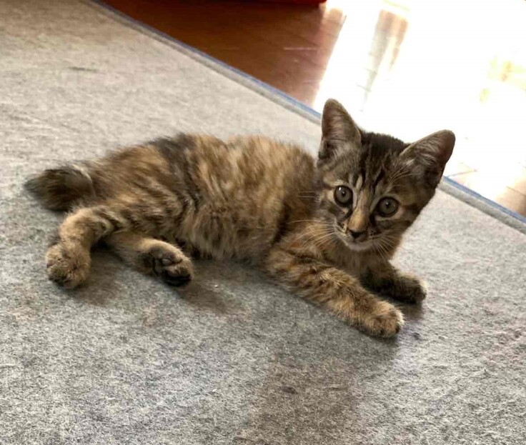 通ってくれた里親さん候補の膝にいつも乗り、里親さんを逆指名したさとこです。ハイジの四姉妹です。