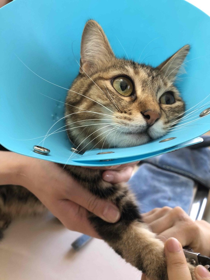 爪切りもさせてくれないので、病院に連れて行くしかありません。不満そうです(笑)。