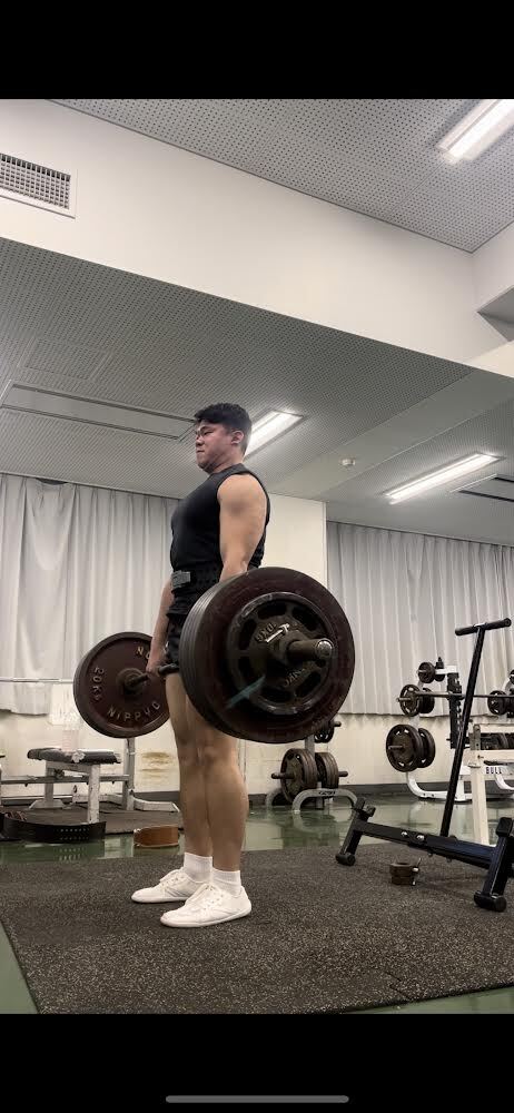 今日の練習は「デッドリフト」という種目を行いました。バーベルを太ももまで持ち上げる競技です!この種目は負担が多いためたまにしかやりません!笑