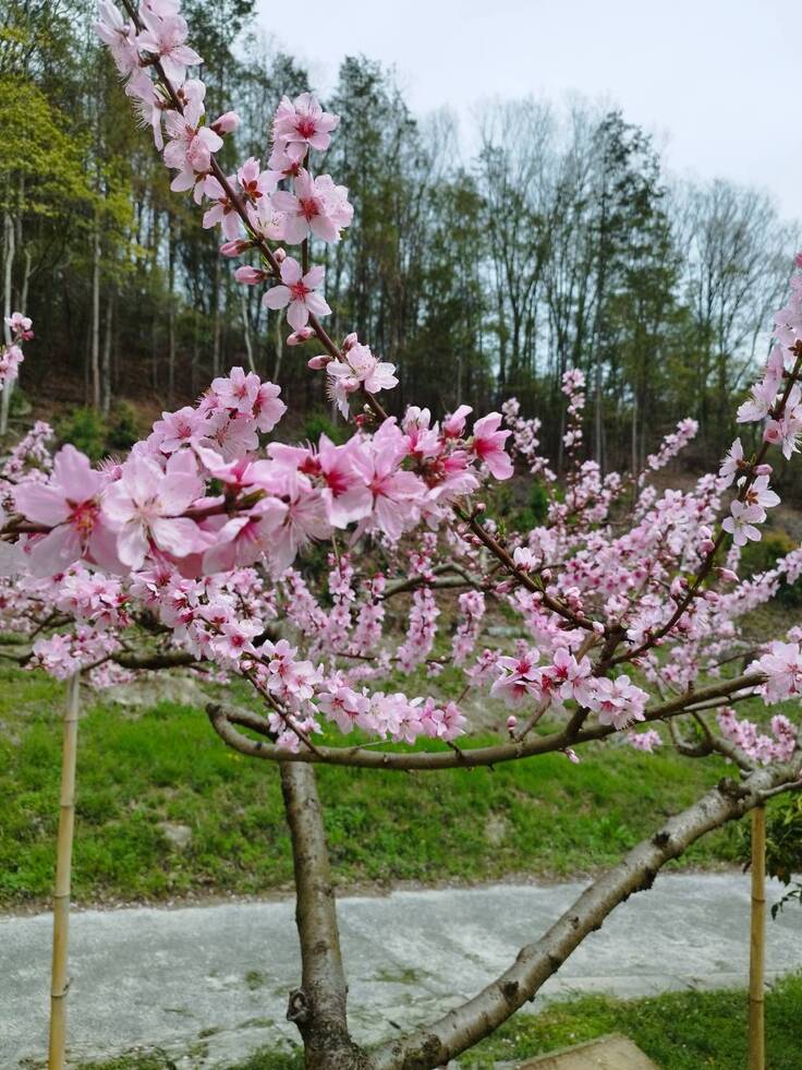 現在、なんば農園の畑では桃の花が満開となっております。桜より濃いピンク色をしています。