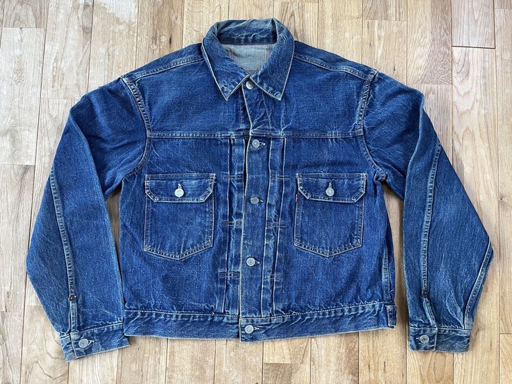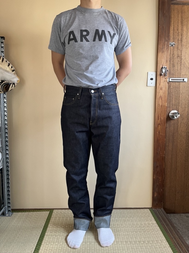 1950-60年台のデニム生地はロウデニムと呼ばれ、防縮やスキュー加工していないためとても収縮率が高く、生地がねじれる特性があった