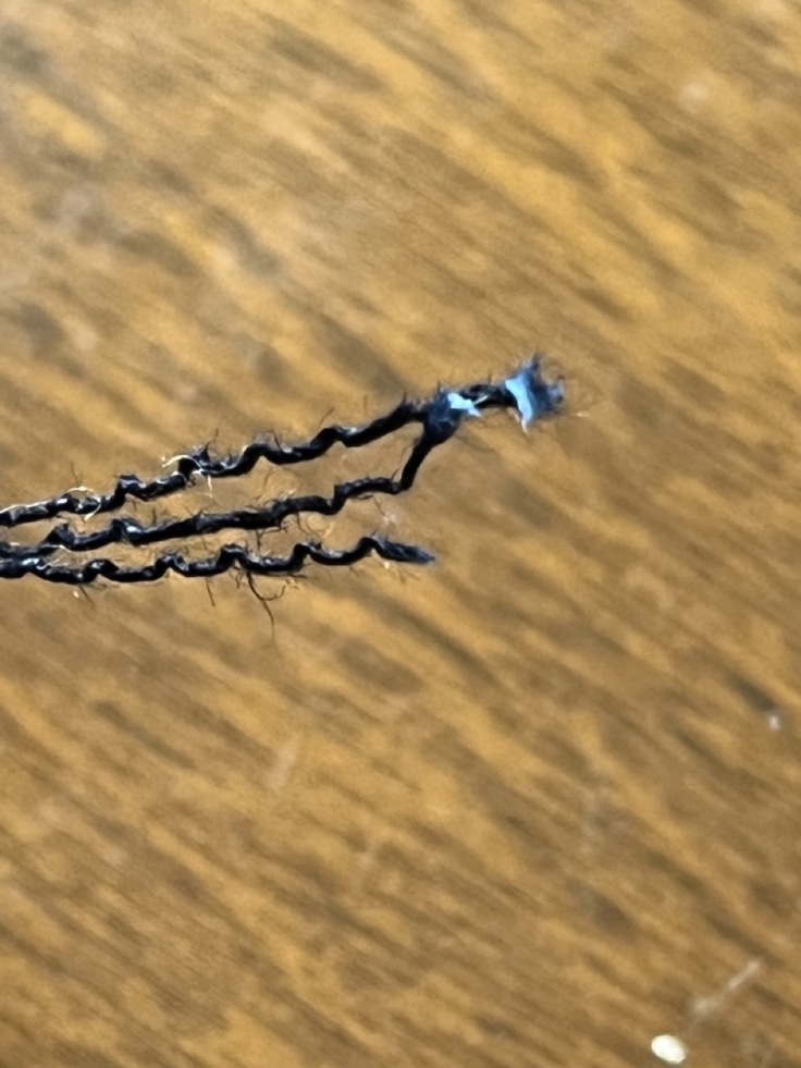ベルト部分のチェーンステッチには返し機能がないためそのままだとほつれるのでそれを止めていたヴィンテージな仕様です。