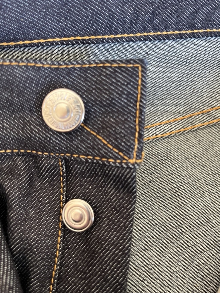 オフセットセンターループ、Vステッチ、隠しリベット、ピスポケットデザインステッチ、ウォッチポケットセルヴィッジ仕様、セルヴィッジ使用のサイドシームなど1950年中頃の501xxの仕様やディテールを参考にオールドスクールモデルとして仕上げております。