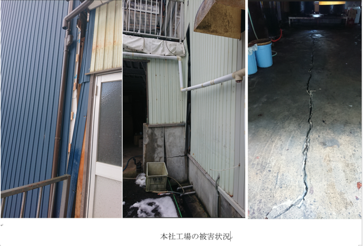 次に本社作業所の亀裂が入った土間の補修や傷んだ箇所を修繕し活用とも考えていますが、築50年以上経っている建物の上に「半壊」との判定なので、状況次第で新社屋を建てることも可能性の一つとして考えています。