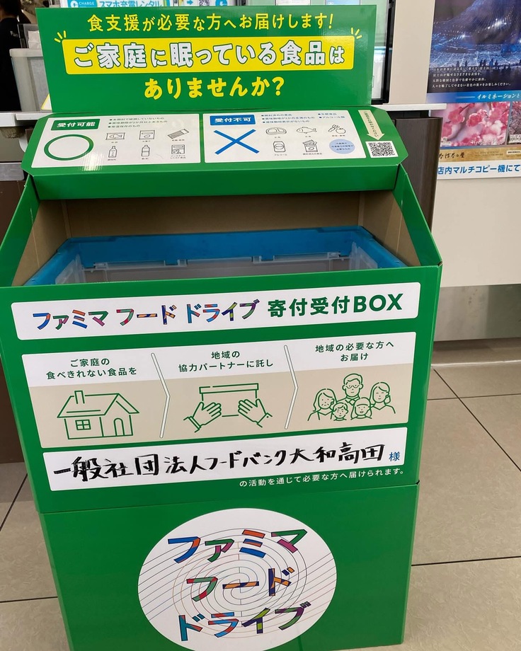 2/1よりファミリーマート橿原曲川町店様にフードドライブボックスを設置し、食品回収が開始されました。