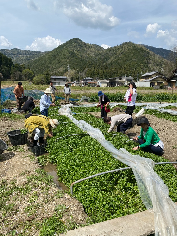 2023年度 3年目を迎えたクレソン水流園のクレソン栽培は順調に伸びて、山からの水を豊富に利用して、ミネラルたっぷりの大きな葉っぱのクレソンとして東京のオーガニックスーパー、全国の有名飲食店で人気の商品として知られるようになりました。クレソン粉も健康食品として根強い人気となっています。クレソン栽培は、全国的に専業にしていく農家も少なく、個人的な規模で成り立っています。クレソンを学びたいというグループがあり、一緒に栽培をすることになりました。後進をどう育てるかは、今後の課題ともいえます。