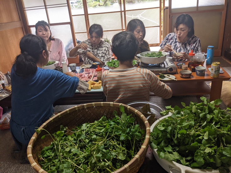 岐阜県の濃尾平野の最北端の里山―岐阜県山県市長滝(旧伊自良地区)で、山からの水をひいてクレソン栽培をしている伊自良さすてな農園。クレソン以外もホーリーバジル、ローゼルなどの健康野菜を中心に、じゃが芋、サツマイモ、ネギ、玉ねぎ、ニンニク、トマト、なす、キュウリなど多品種の野菜を来園者の皆様とともに、無農薬の資源循環オーガニック農法で栽培しています。前回のクラウドファンディング「里山農園にいらっしゃい!」(21年秋)では、賛同者の皆さんのご協力のもと、目標金額を達成し、農園を拡大し、古民家のコミュニティーハウスを借りて、改修整備を始めました。以来、様々な農園イベントを継続的に開催し、体験型農園として多くの方が、度々訪れるようになってきました。クレソンの水流の中でクレソン摘みをして、来園者皆でクレソンしゃぶしゃぶを食べるというシンプルな体験が、子供から大人まで、心もカラダも解放できるリトリートの場所として愛されてきたのです。必須栄養素が、野菜果物の中で一番多く含まれているというクレソンを、畑から直接、たっぷりと食べることができる場所が、伊自良庵なのです。