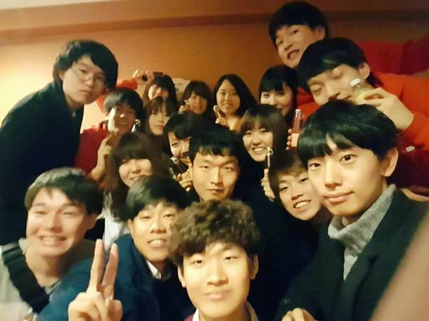 (韓国人参加者が実行委員にサプライズをしてくれた時の写真です。)
