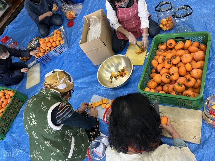 体験の場として、蕎麦打ち体験、柿酢つくり体験や一重菊@花嫁や山菜などの季節の食材を使った