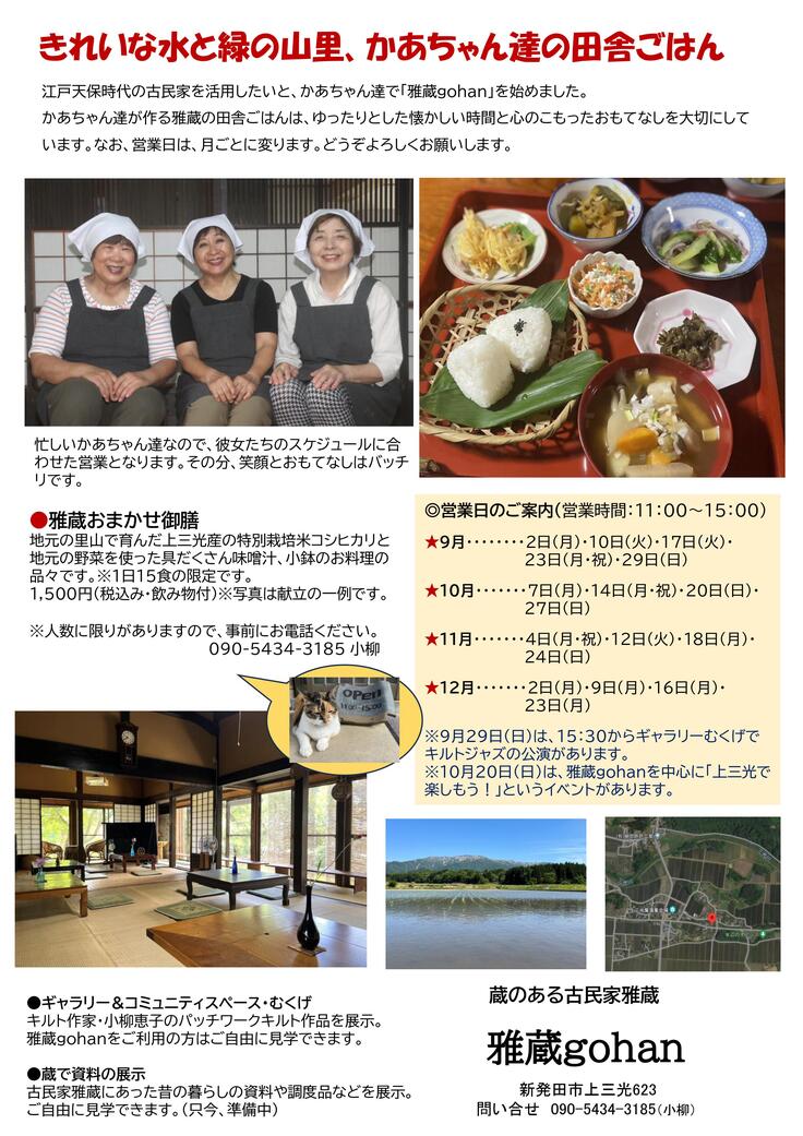 9月2日(月)、3人のおかあさん達による雅蔵gohanがオープンしました。