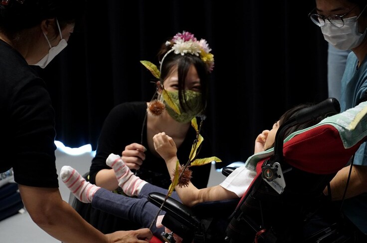 当時、日本にはそのような機会が存在していなかったこともあって、観客が存在するのか、外出は可能なのか、という不安と懸念は大きなものがありましたが、杞憂に終わりました。会場にやってきたのは、色んな障がいを抱えた子どもたち、想定以上に重い障がいをもった子どもたちと家族でした。多くの医療的ケア児の姿もありました。そして、障がい児らに寄り添いながらも、子どもらしくはしゃぎ、全身で楽しむ健常のきょうだい児たちの姿がありました。パフォーマンスを通して私たちが出会うのは、障がいのある子ども、医療的ケアを必要とする子どもだけでなく、家族みんなだと考えるようになりました。
