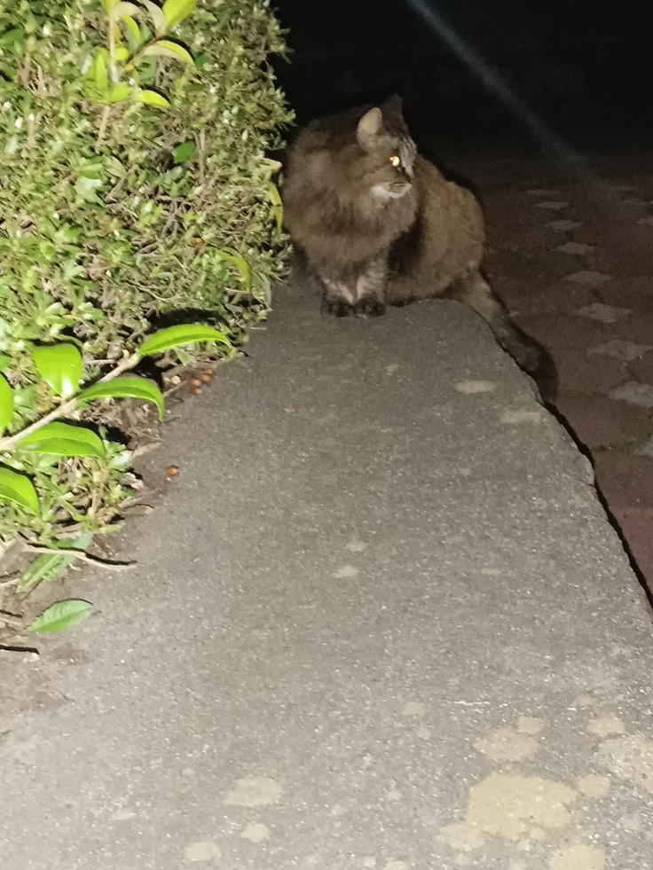 最近は夜中も暖かいので、皆ずっとお外にいます💦 片目のチャピーちゃんも13歳ですが、猫より人に甘えたいタイプなんです🥴永遠と終わらないので、いつもここで30分位掛かっています🥲 公園の茶トラのチャボ君は猫をいじめたばかり居るので、一人ぽっちで居ました。ご飯をもらった様でしたので、缶詰だけを食べてすぐにごろんとし、撫でてくれ〜アピールです😁 下の写真は長毛のモカちゃんです、大人しく見えますが、メス猫には厳しいこです💦 その下の写真はちび斗真君がモジャママと久々にあったのですが、ママに全然相手をしてもらえないのでした💦 皆も親離れと子離れして行くのですね😢