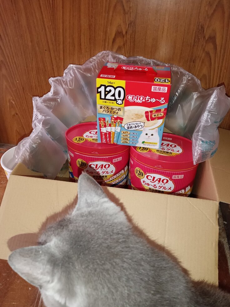 みしゃまる様からの大量の差し入れが送られてきました😭🙏贅沢ちゅーるのご馳走です🥲本当に大変申し訳ありませんでした…ありがとうございます🙇皆様の優しさに本当に頭が上がりません🙇