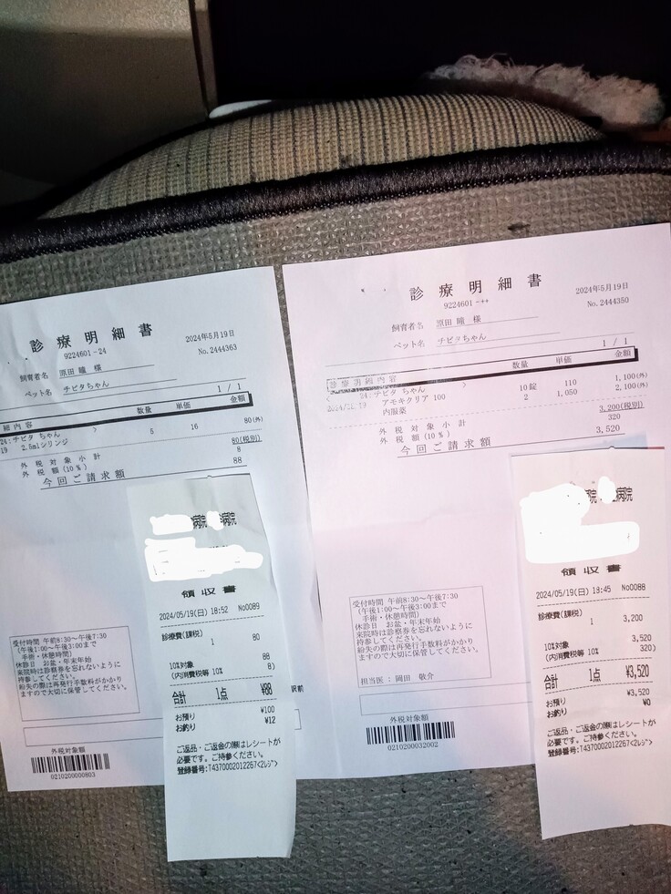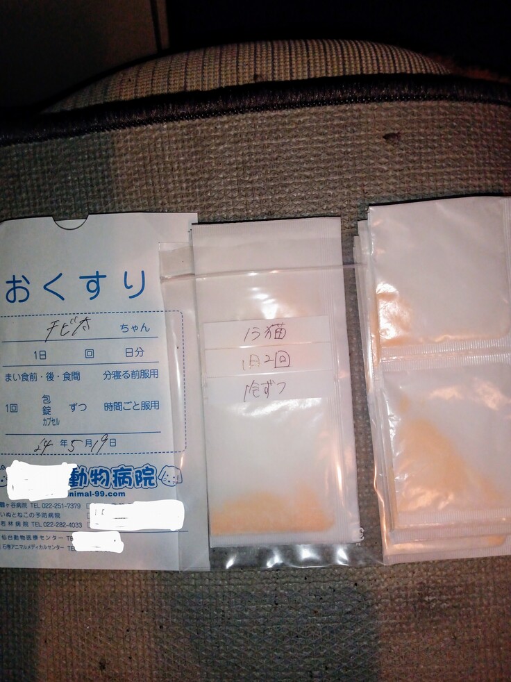野良猫達と保護猫達の薬を病院から処方してもらいました。みんな風邪ぎみです💦
