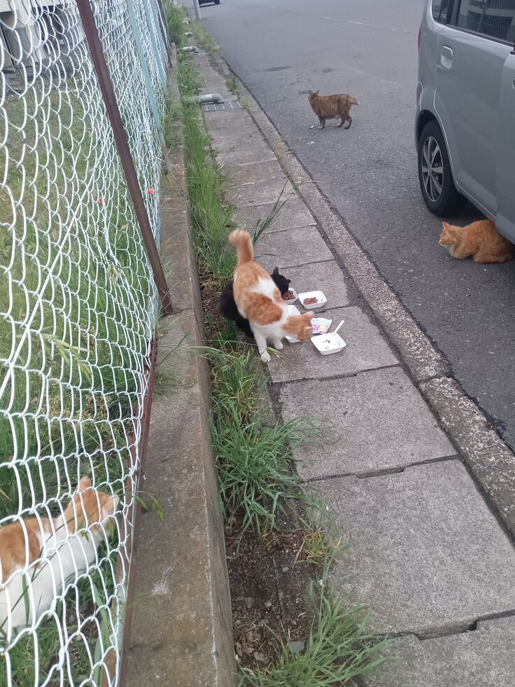 昨日休みだったのでたまには、昼間にご飯をあげに行きました😀ちゃんと集まってくれました😄