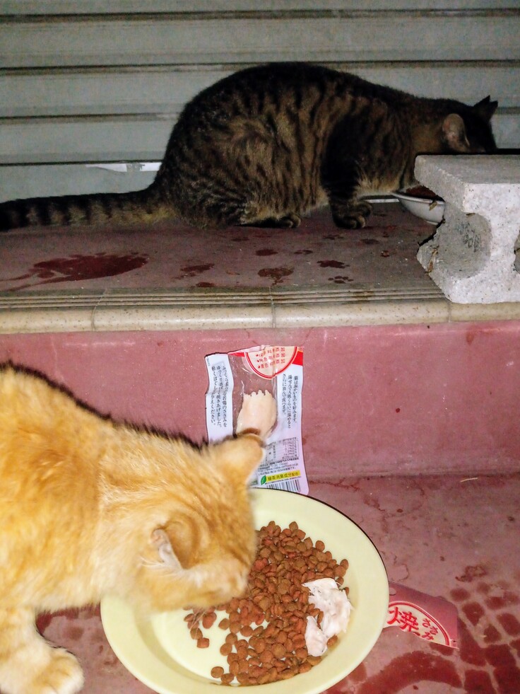 今日も土砂降りの中猫達が待ってくれていました、雨降ると誰も餌をくれなくなるのです。腹ペコリンです😮