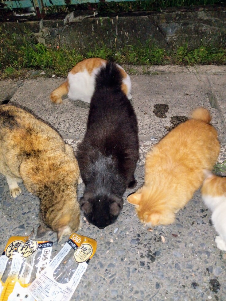 チャオの一本カツオはどの猫達も大好きなんです😄何本買ってもあっという間です💦家の猫達よりも外猫達を優先にしてしまっています🥴