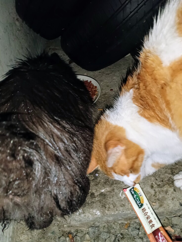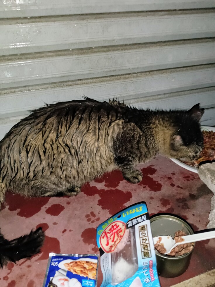 市営住宅の仔達は屋根がある所なので、ゆっくり食べられましたが…公園の子達はみんなずぶ濡れ状態でした💦