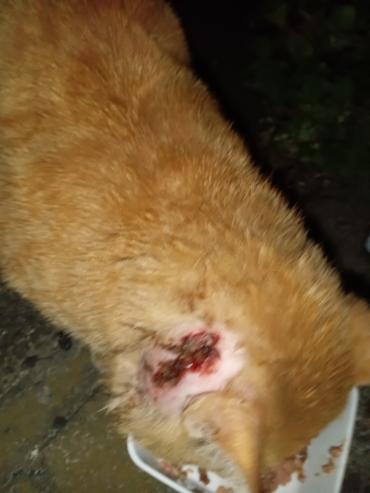 オス猫のタマ君が又ケンカをして来ました💦頭を噛まれて、大きい穴が二つ空いてしまい、化膿していたのが、やっと膿が出て来ました🥶化膿しないと怪我も見逃してしまうのですが、薬を餌に混ぜて食べさせました。膿が溜まっていますと凄く痛むのです、3日前は出て来なかったので、恐らくその時にケンカをしたのかも知れませんが、相手の猫は誰なのか?ジュニア君も全然出て来なくなりました😰 猫同士のケンカはどっちも大変な事になるので、どっちも心配です😩