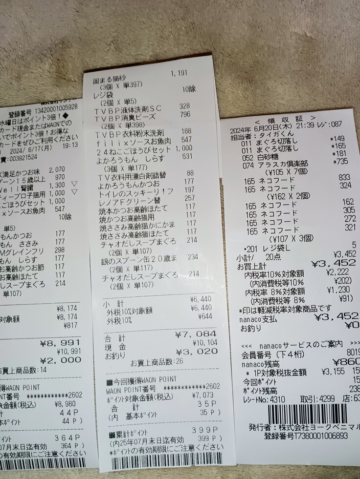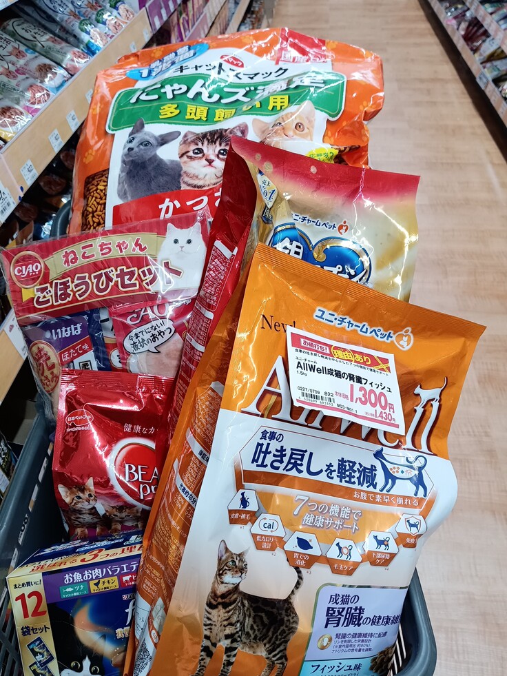 野良猫達と保護猫達の餌を沢山買うことが出来ました😀ありがとうございます🙇買ったことの無いカリカリが少し安くなっていましたので、今回だけ買ってみました😀ありがとうございます🙇