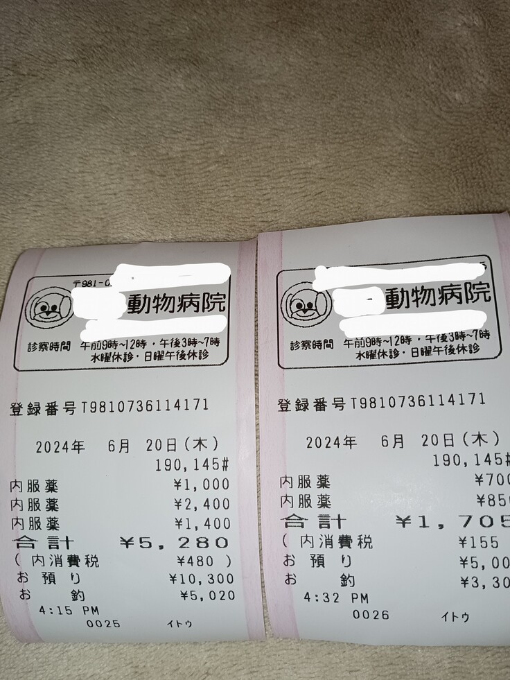 皆様から頂いた支援金で月曜日に4匹のぎょう虫検査を予約しました。チビタ君も下痢になってしまいました。