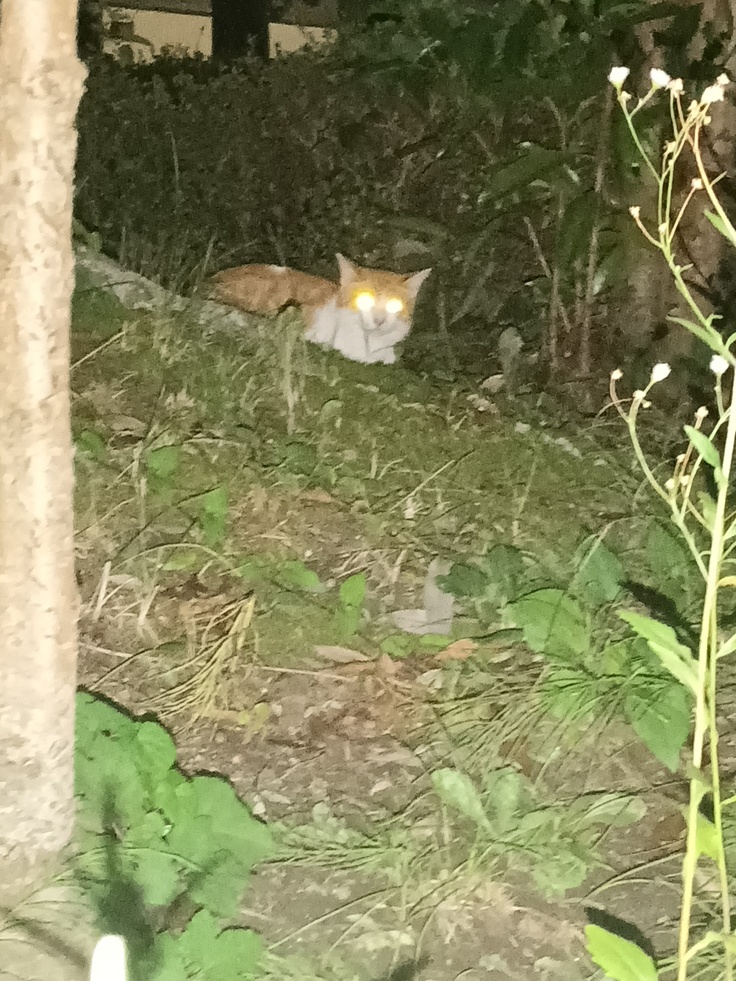 全然見たことの無い猫が出て来ましたので😵茶トラの若いオス猫だと思われますが、耳カットはされていないので、遠くから私に向かってご飯をくれ〜と鳴いていました。病院には26日にも去勢の予約を取りましたので、2匹手術に連れて行く事を予定に入れました。大人しく捕獲をさせてくれ〜🙏