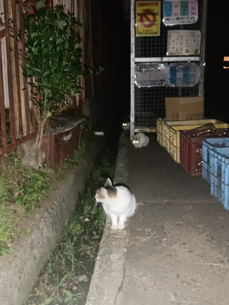 昨日去勢の手術の予定だった疥癬の子が出て来ましたので、慌てて捕獲器を取りに行きましたら、何処かへ居なくなってしまいました💦 幾ら探してもいな見つからなくて、捕獲出来ませんでした💦 なぜに居なくなったのかと気を揉んでいたら、近くに別の猫がいました💦