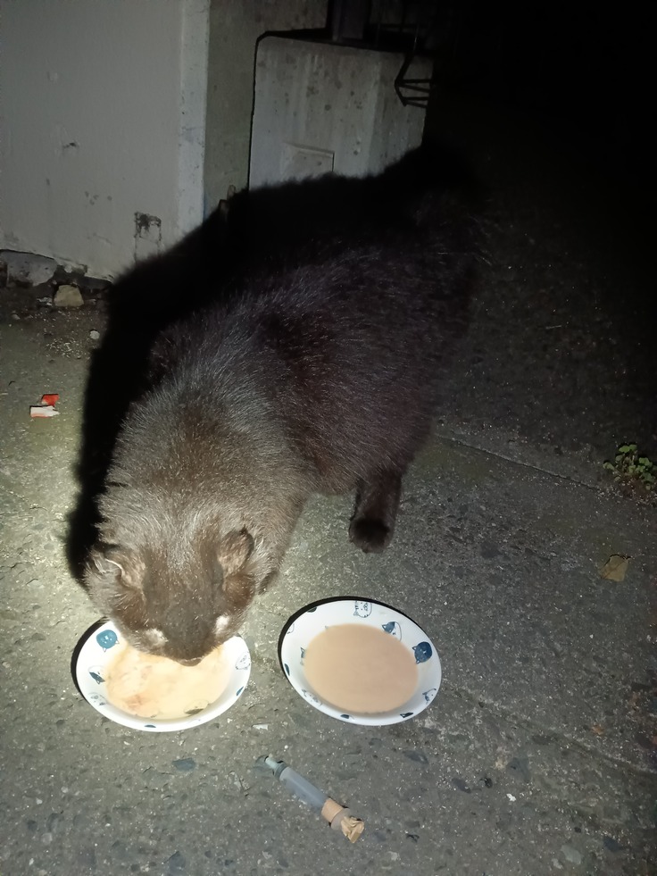 昨晩からの餌やりでびっくり仰天な出来事がありました😱😱黒猫の斗真君が2匹居ました😵