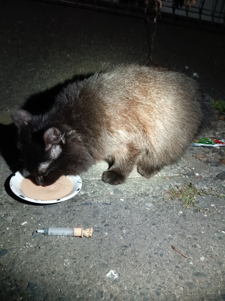 ら、タマ君の達の餌場にいた事がありました。タマ君と一緒に居る黒猫のメス猫ちゃんのコロンちゃんを追い掛けていじめてました…子猫のくせに同じ黒猫が気に入らないのかなぁ〜と呼び止めるのですが、逃げて行かれます😥