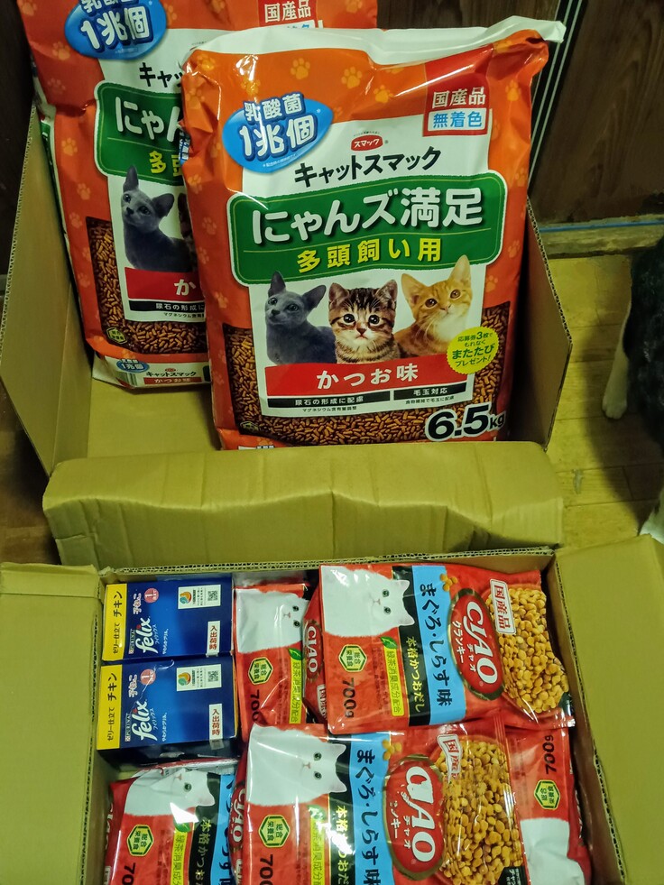 本当に支援者の方々にお礼を申し上げます🙇毎月ぐーたん様から猫達のご馳走を大変に感謝致します🙇