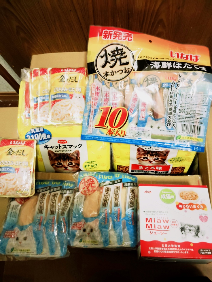 ぐーたん様から毎月の猫達のお楽しみが届きました🙏 本当にいつもありがとうございます🙇