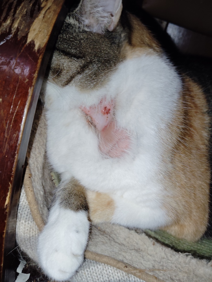前回支援者の皆様方のお陰様で抜歯をしたミミちゃんが自分の胸辺りをしきりに舐めて毛がどんどん抜けてしまいました😱 どうやら体が痒いみたいでした💦 病院に行きましたら、カビが原因でした💦 猫も高齢になると免疫力が衰えてくるので、感染しやすい様です😥