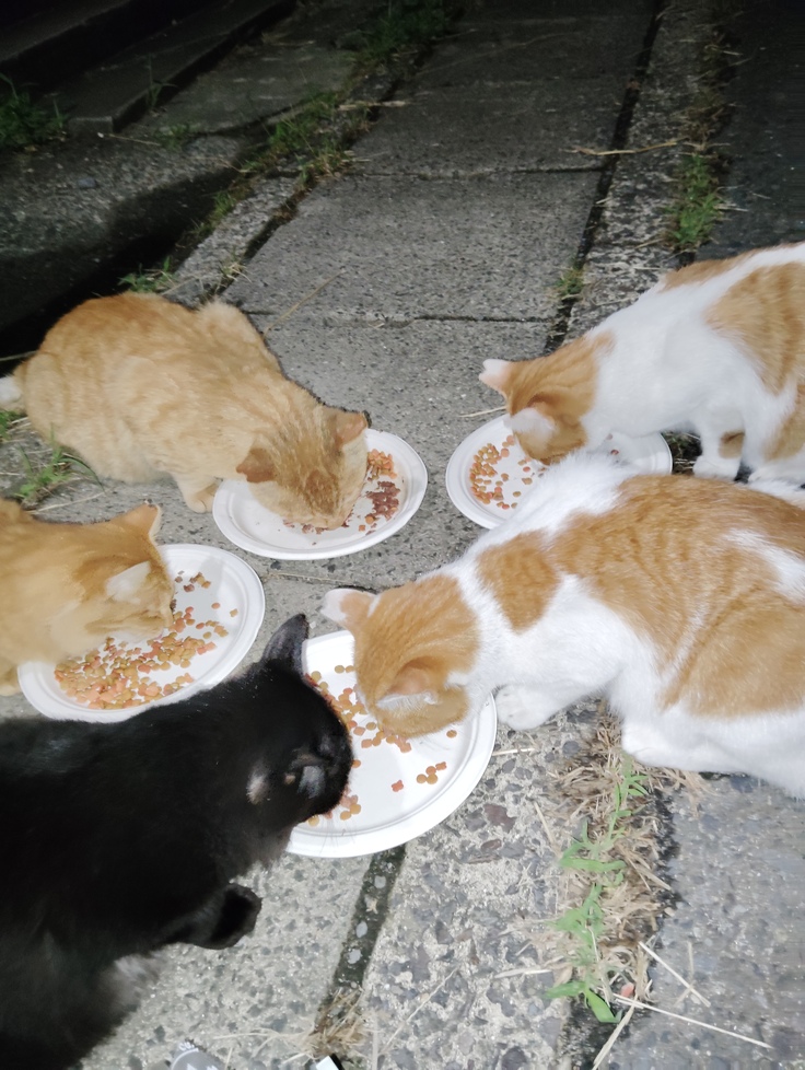 小屋を作ってくれたおじいちゃんご面倒を見てくれている子達が最近毎晩ご飯をもらえなくなった様なのです💦 毎晩みんなが私を待っています🥴 おじいちゃんも今まで両親と小さいお店をやっていたのですが、3年前に父親が亡くなって、母親が脳梗塞で動けなくなって、施設に入ってしまいました。外で働いた事がないおじいちゃんは自分のわずかな年金と母親の施設の支払いで残った年金で暮らしているのですが。
