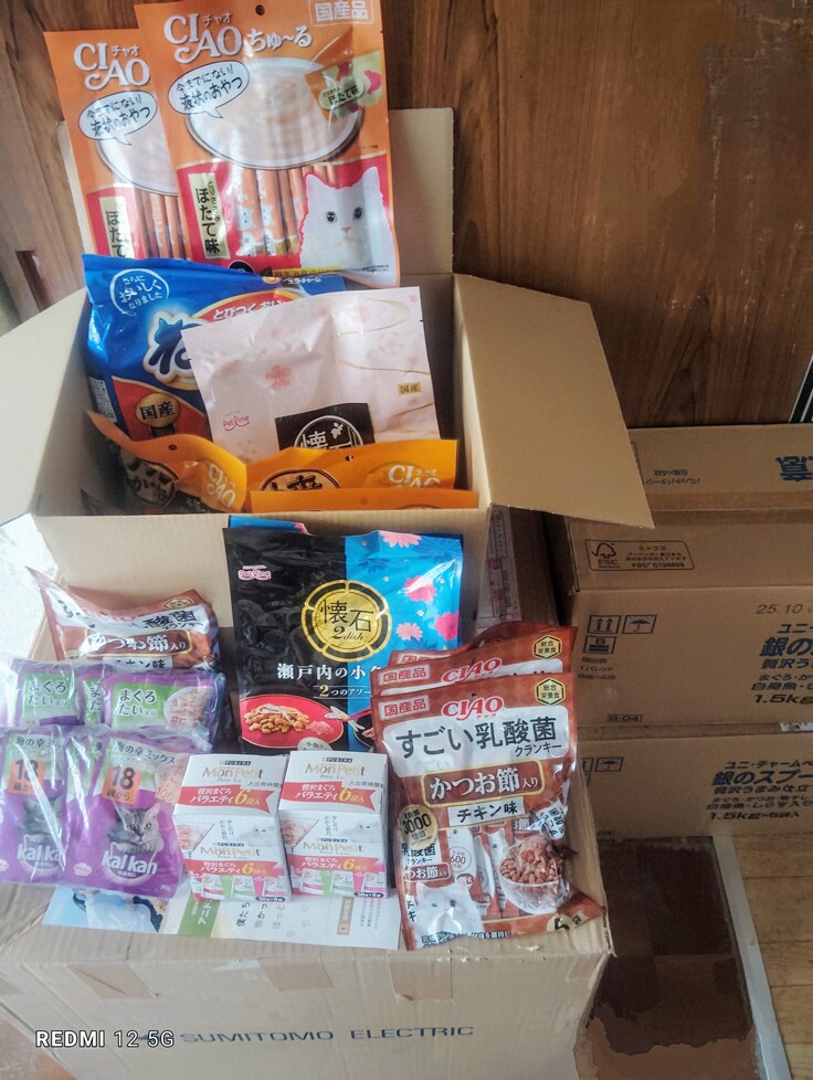本当に支援者様方に心から感謝しています🙏 ぐーたん様からも猫達のご飯が届きました😀