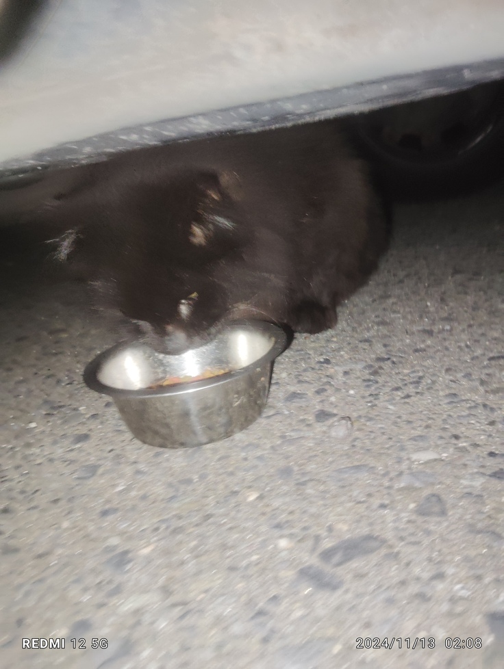 久しぶりに黒猫の斗真君の父猫が現れました、長毛で、尻尾はかぎしっぽで、息子猫と瓜二つですが、体はその2倍なのです…お腹を空かせて皆の所まで来ていました😊