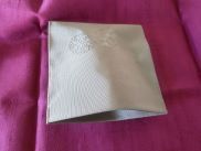 数珠袋は形は正方形に近い袋です。折れば、金封と同様、織が堅いので中味がこぼれるはありません。ご自分の好きな大きさに出来、防水性もあります。