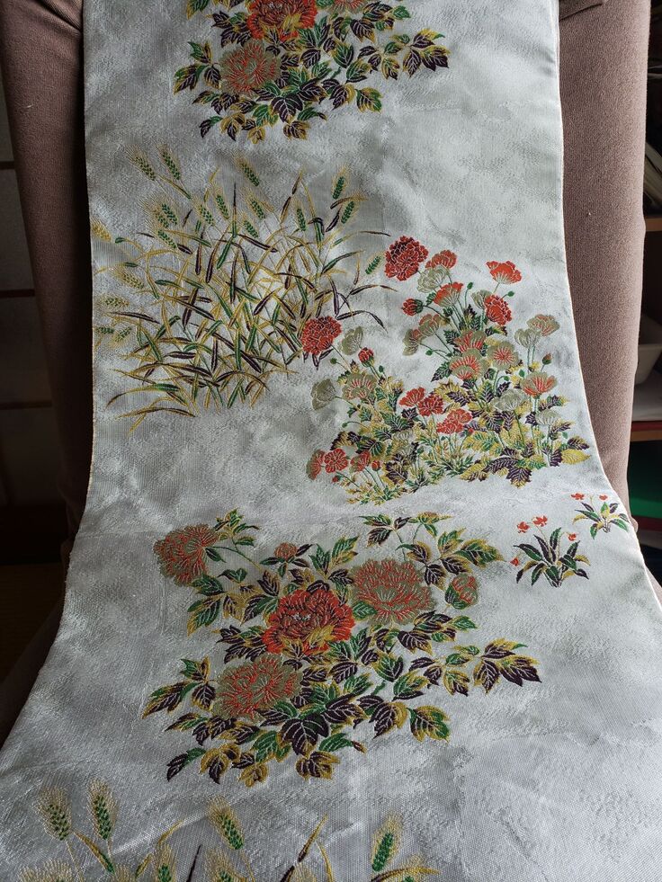 染めでもなく、刺繡でもなく、糸を織り込むだけで図柄を作っております。