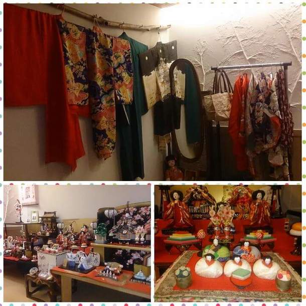 その昔、芸者さんたちが踊りの練習をしていたという屋根裏部屋に今年76歳になる叔母が生まれた時に、祖母が縫ってくれたという着物と古い雛人形が残っていました。